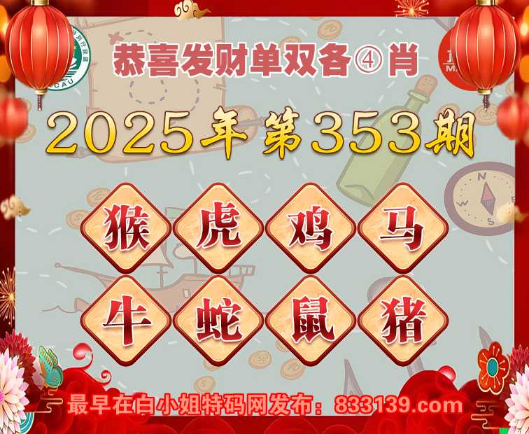342期:【恭喜发财】 单双各④肖开:虎04准上榜高手