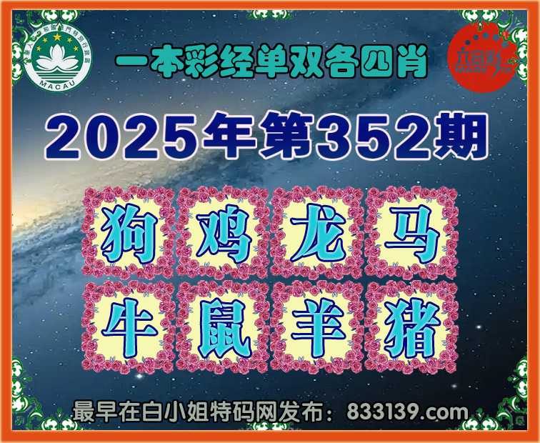 352期: 『一本彩经』 单双各四肖开:狗44准上榜高手