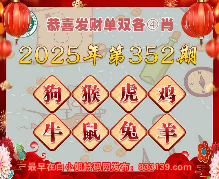 352期:【恭喜发财】 单双各④肖开:狗44准上榜高手