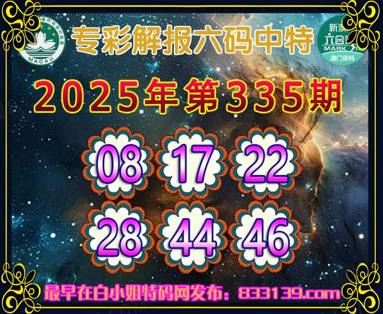 335期:《专彩解报》 六码中特【08.17.22.28.44.46】开:44