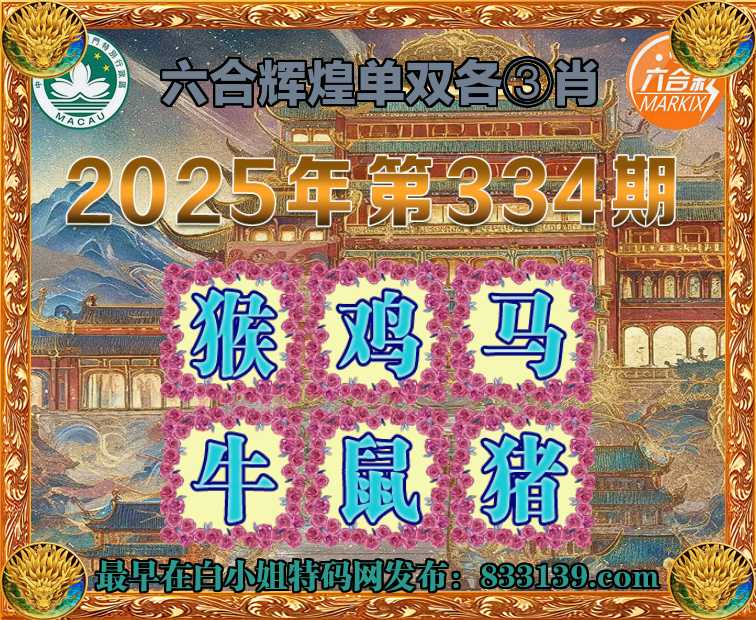 334期:《六合辉煌》 单双各③肖.鸡.马.牛.鼠.猪】开:猴46