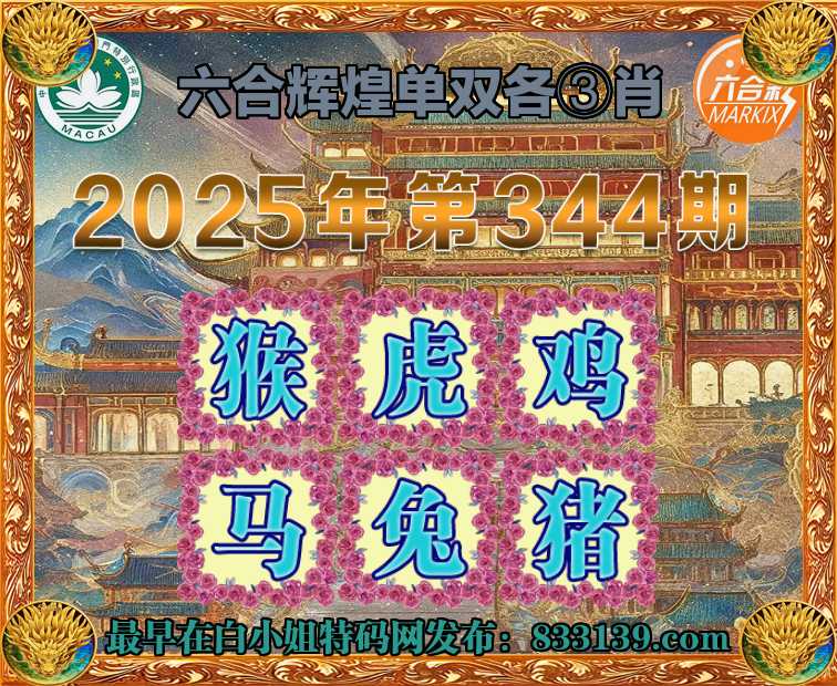344期:《六合辉煌》 单双各③肖【猴.虎.鸡.马..猪】开:兔27
