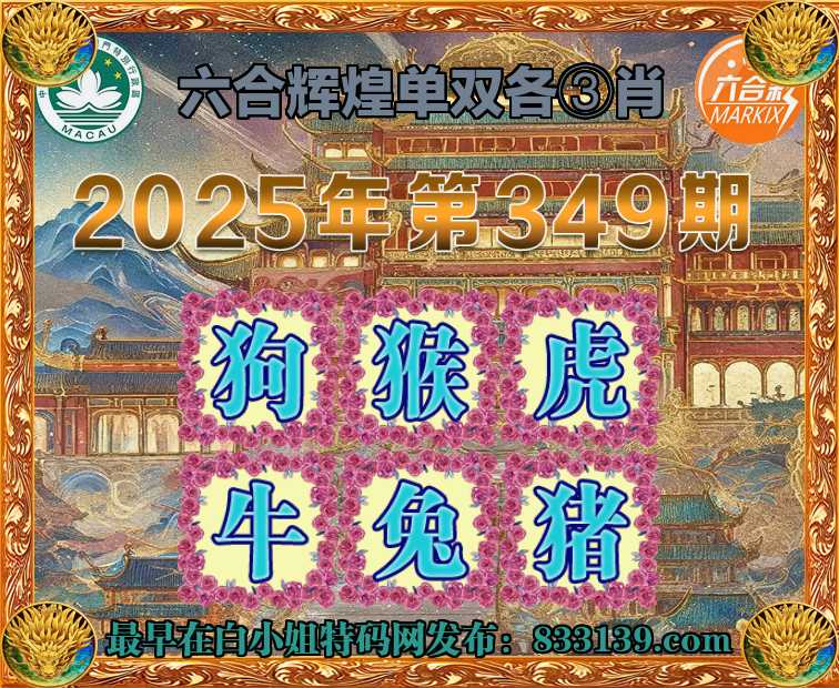 349期:《六合辉煌》 单双各③肖【狗..虎.牛.兔.猪】开:猴22
