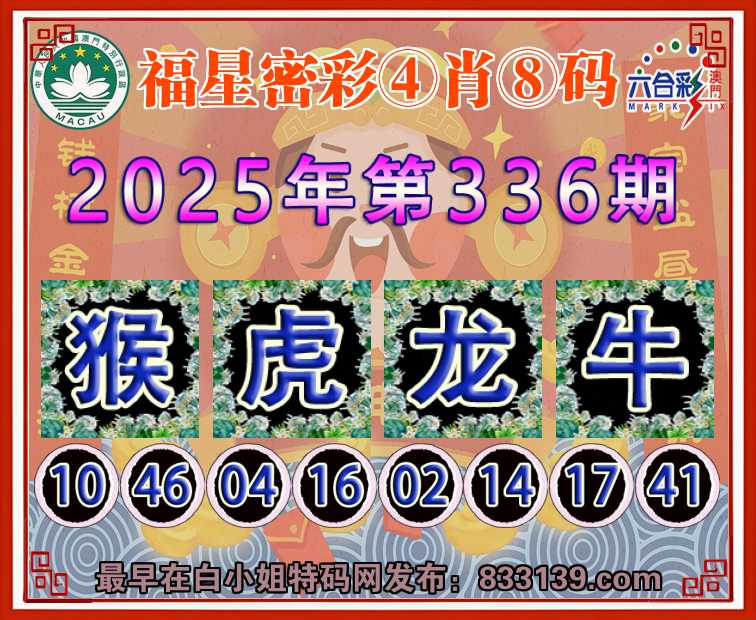 336期:『福星密彩』 ④肖⑧码【猴虎龙】开:牛17