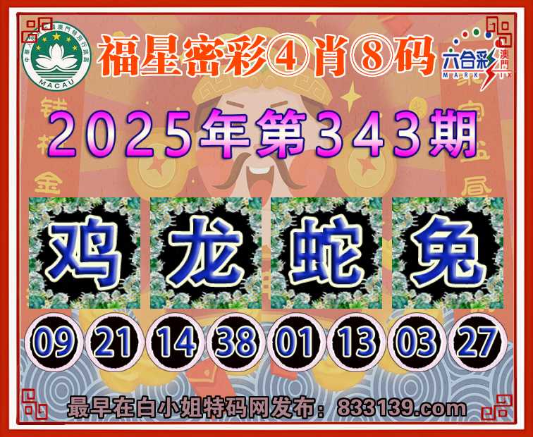 343期:『福星密彩』 ④肖⑧码【鸡蛇兔】开:龙38