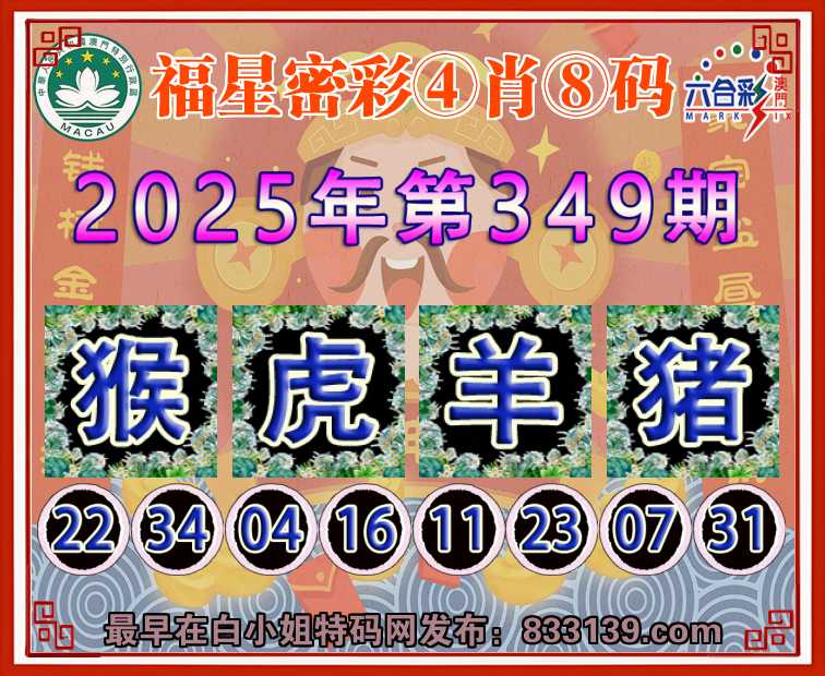 349期:『福星密彩』 ④肖⑧码虎羊猪】开:猴22