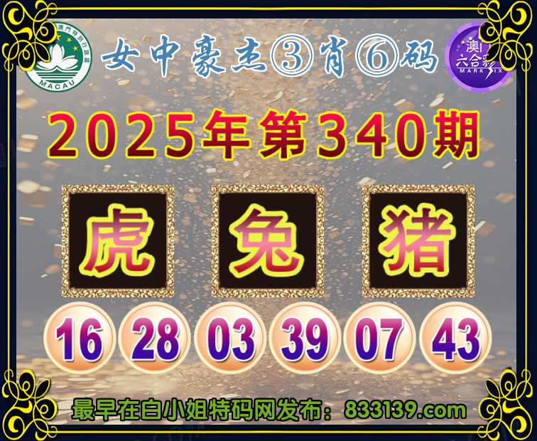 340期:〖女中豪杰〗 ③肖⑥码兔猪】开:虎16