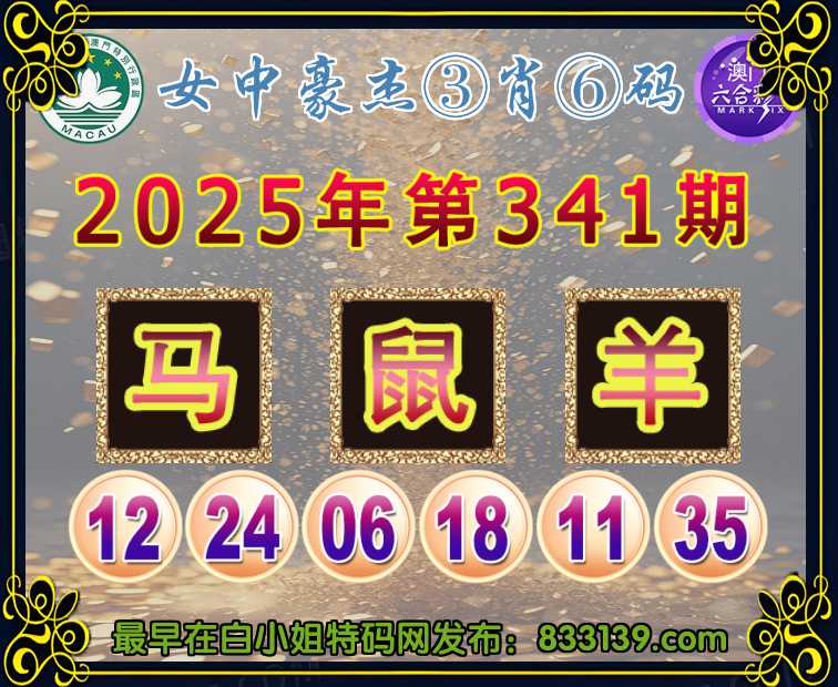 341期:〖女中豪杰〗 ③肖⑥码【马羊】开:鼠06