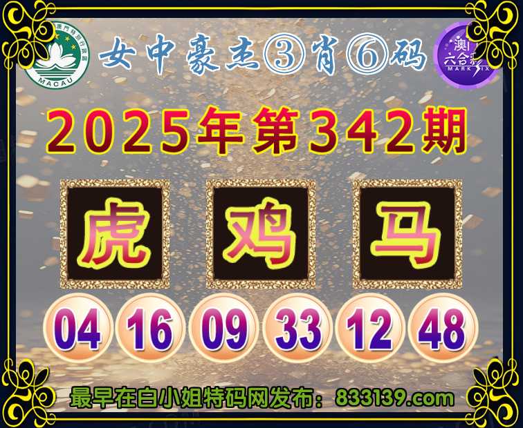 342期:〖女中豪杰〗 ③肖⑥码鸡马】开:虎04