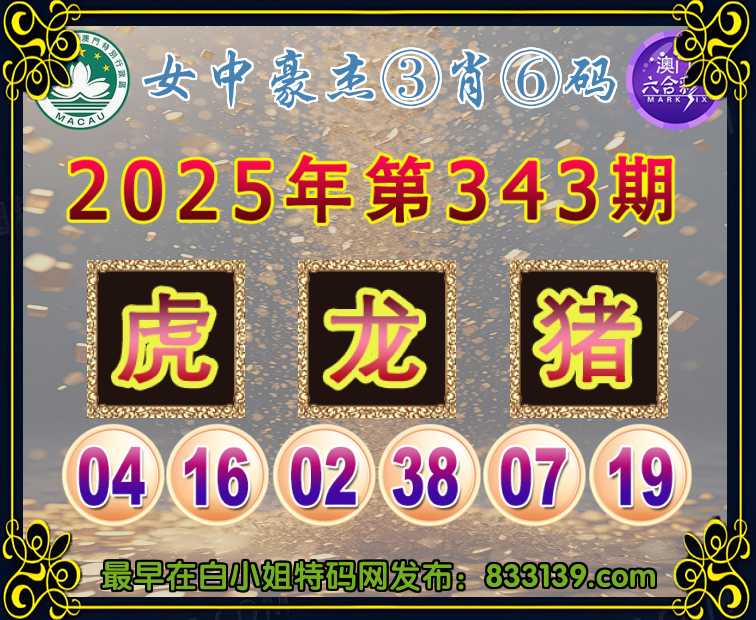 343期:〖女中豪杰〗 ③肖⑥码【虎猪】开:龙38