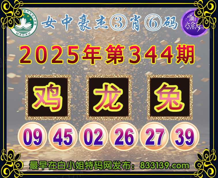 344期:〖女中豪杰〗 ③肖⑥码【鸡龙】开:兔27