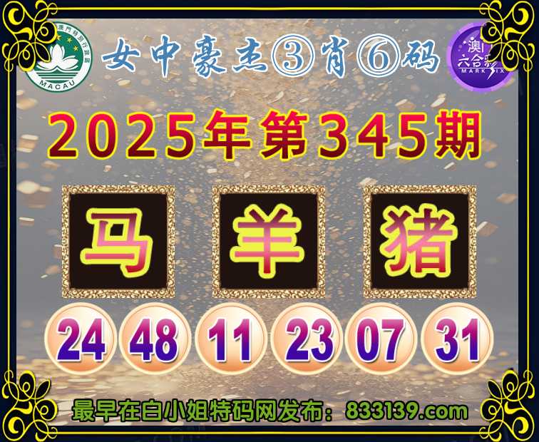 345期:〖女中豪杰〗 ③肖⑥码羊猪】开:马24