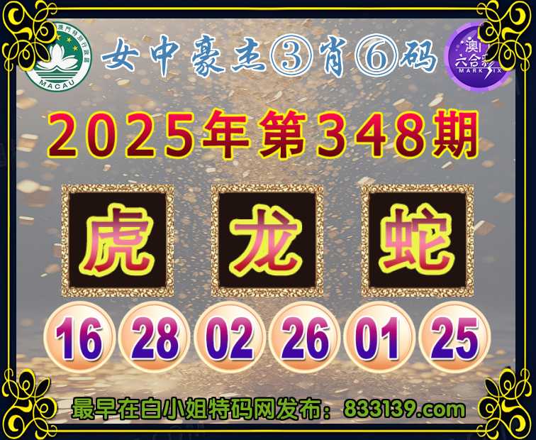 348期:〖女中豪杰〗 ③肖⑥码龙蛇】开:虎16