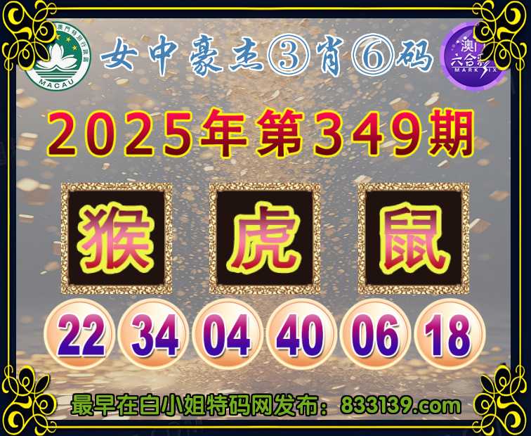 349期:〖女中豪杰〗 ③肖⑥码虎鼠】开:猴22