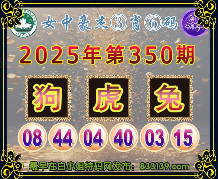 350期:〖女中豪杰〗 ③肖⑥码【狗虎兔】开:蛇49