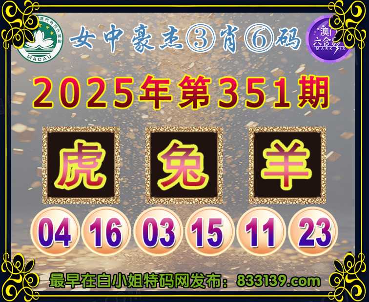 351期:〖女中豪杰〗 ③肖⑥码兔羊】开:虎04